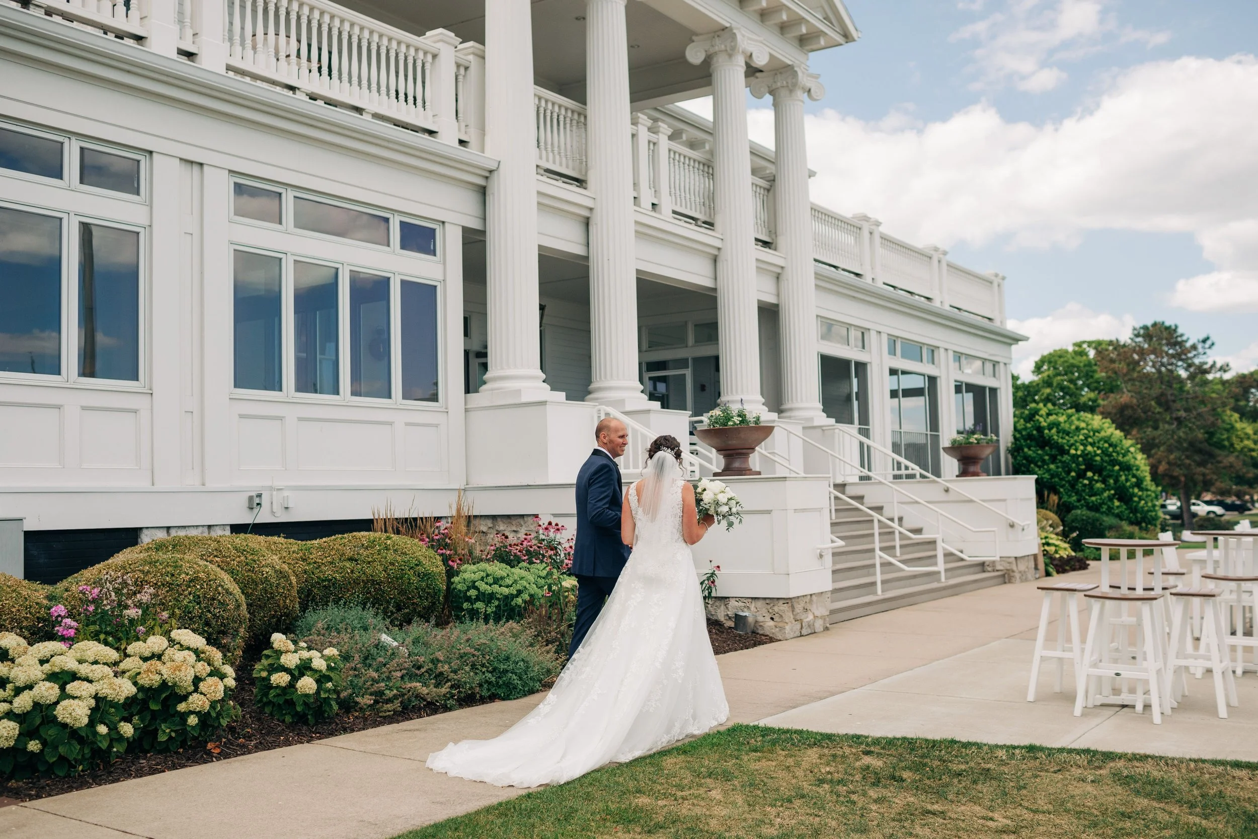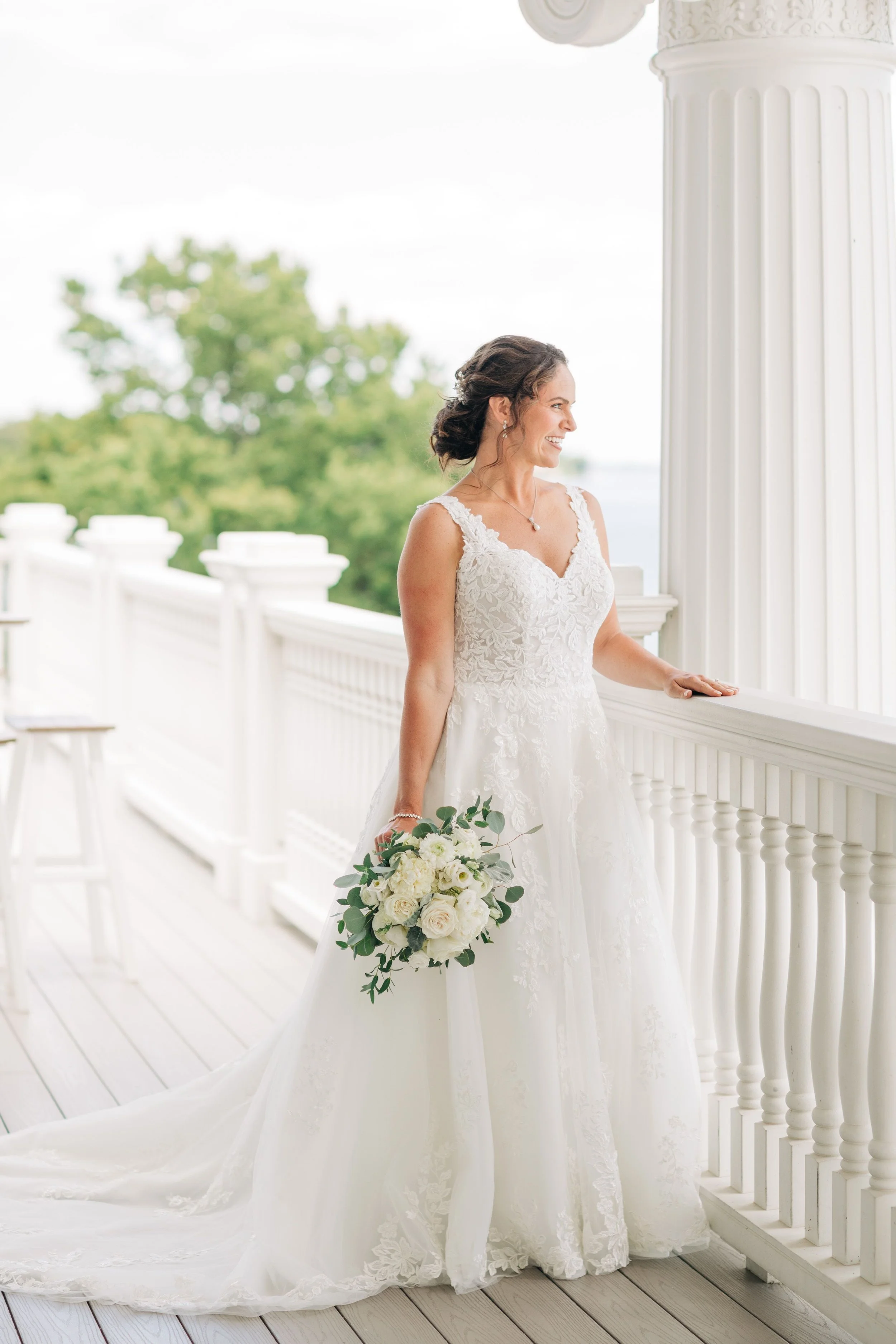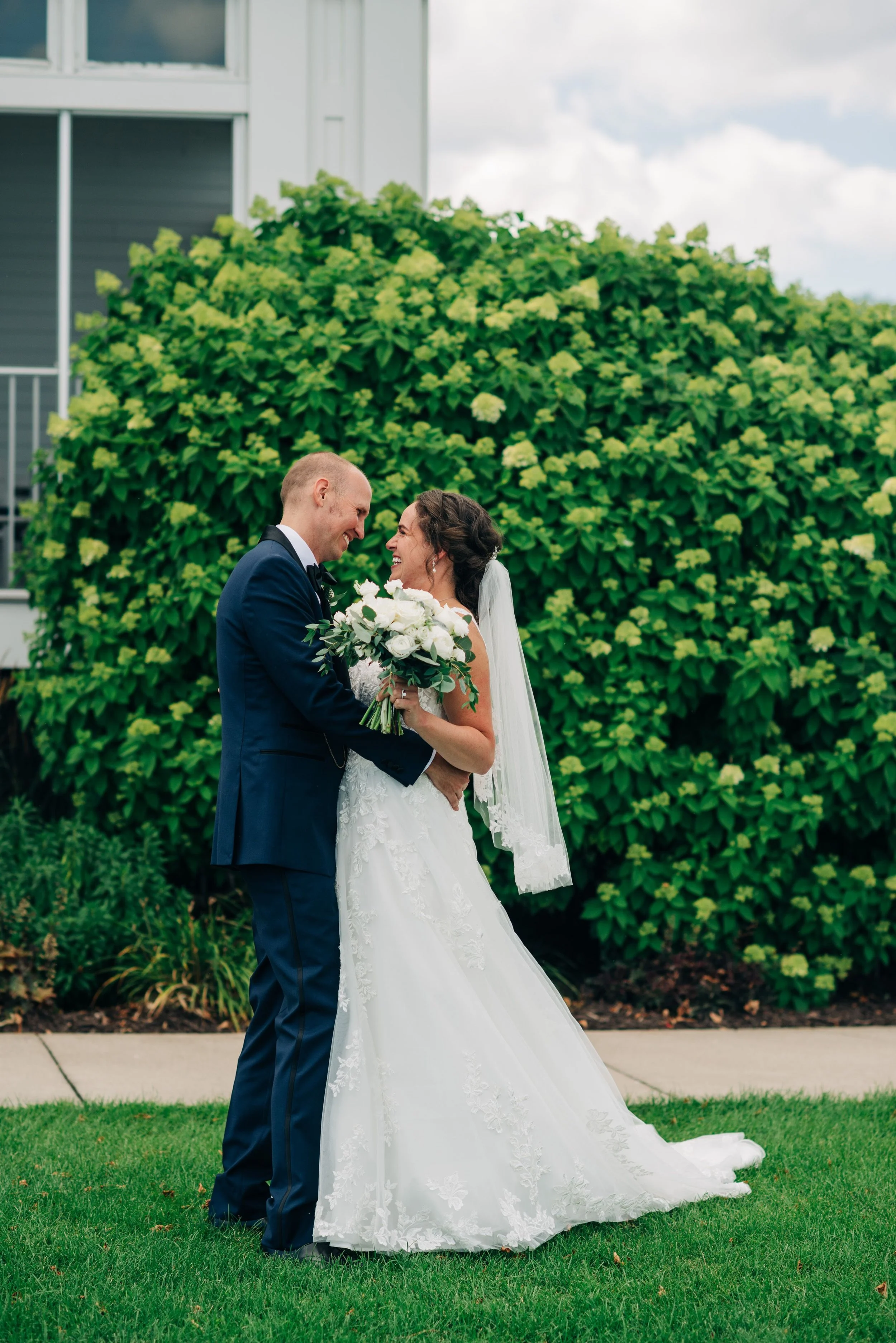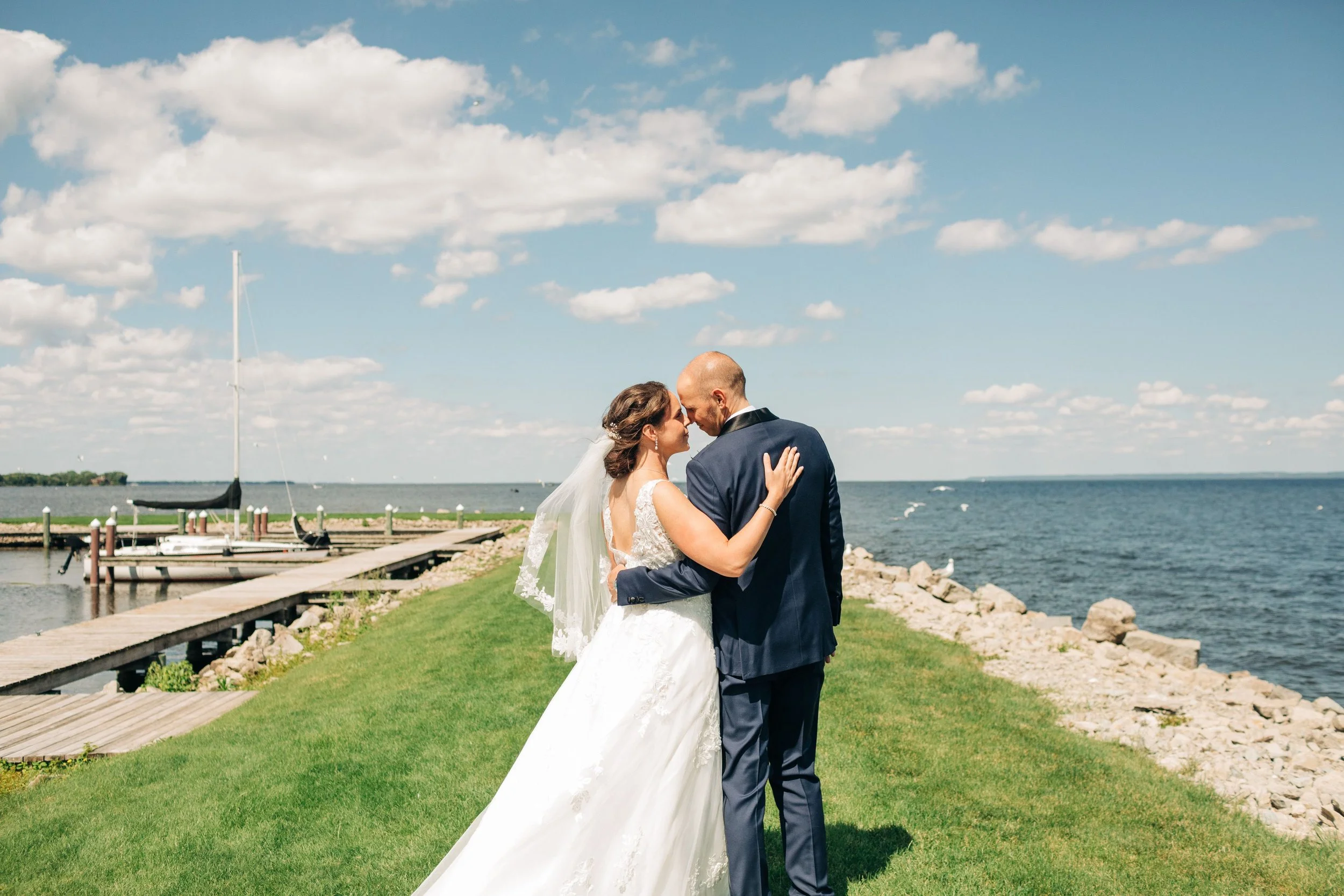 They had a beautiful waterfront ceremony with their closest family and friends. The idyllic weather made for spectacular photos and a lovely cocktail hour. Then it was time for dinner and some dancing!