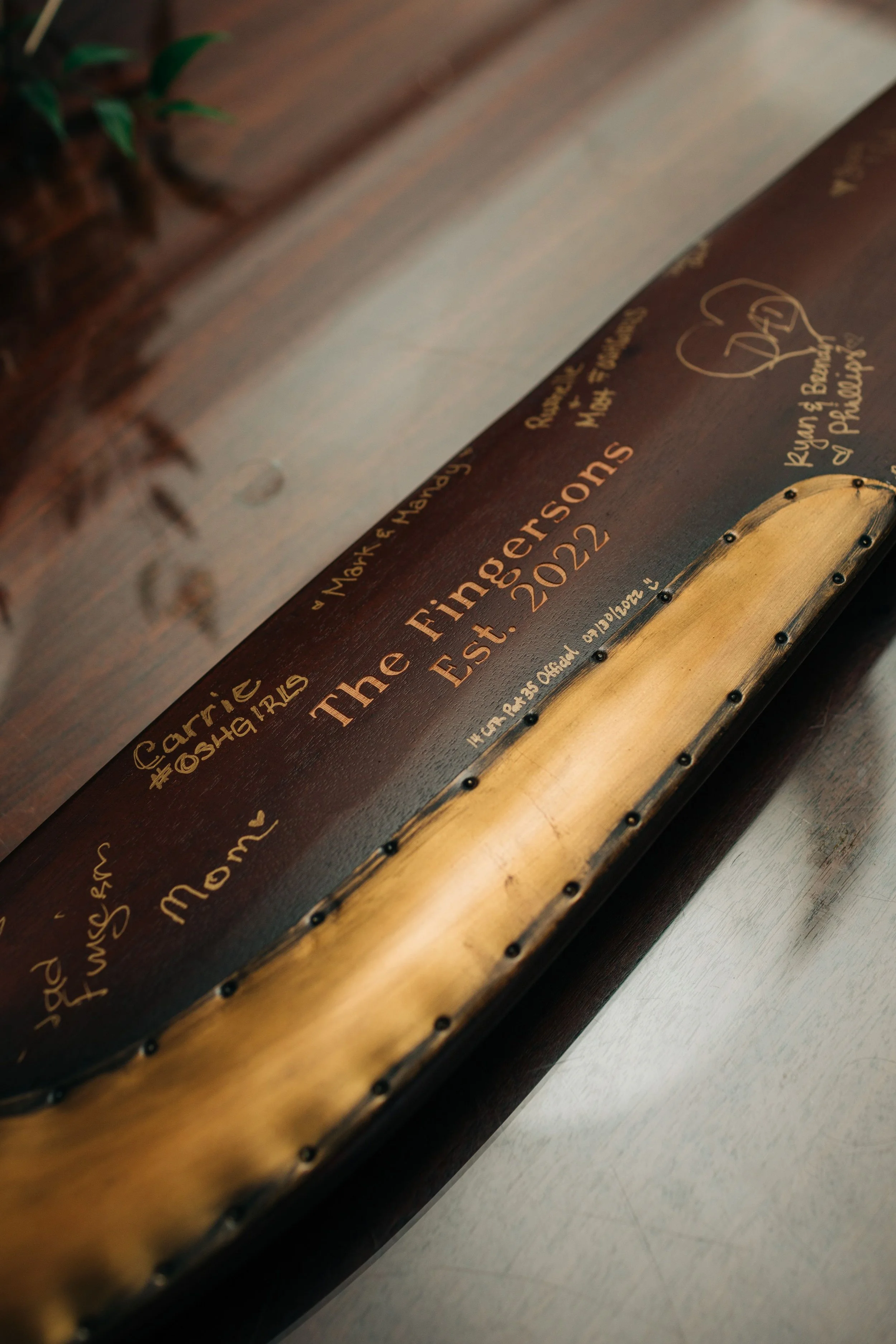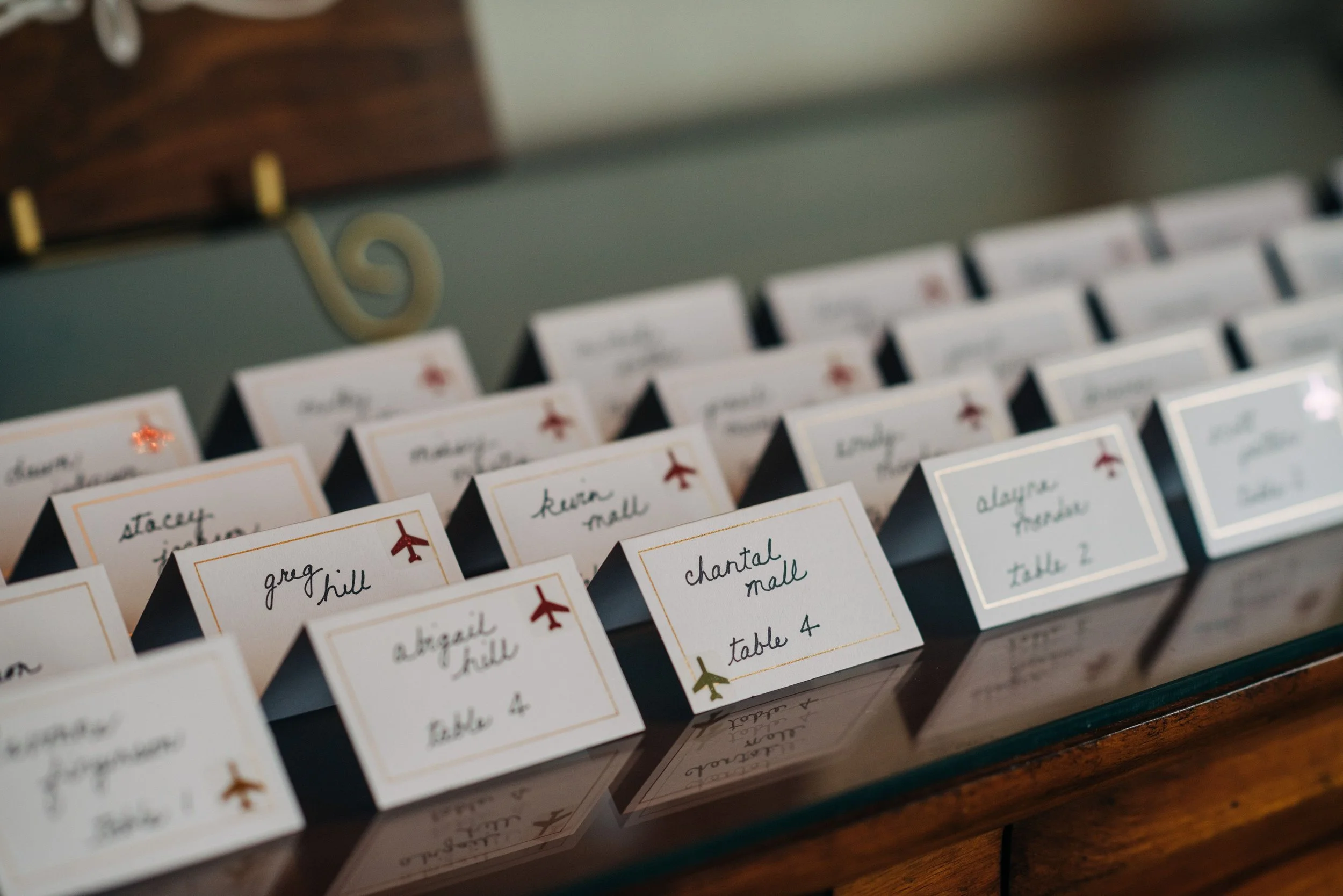 Their decor kept with the aviation theme from the escort cards to the favor cookies. Another fun thing they had was a propeller for their guests to sign.