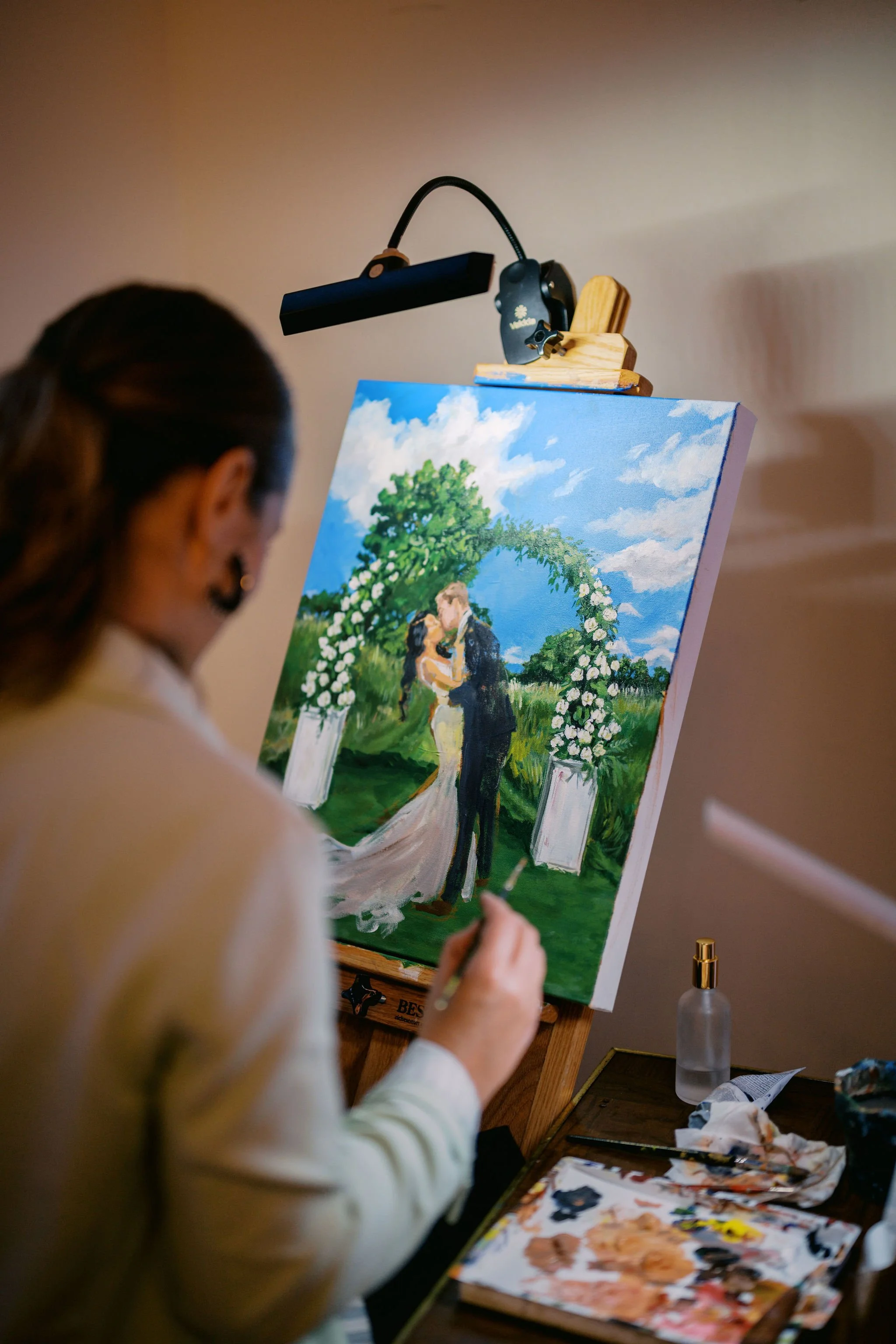One of the highlights of the day was having a live painter! Ivy McConnell painted a scene from the ceremony live during the reception and the end product is incredible!