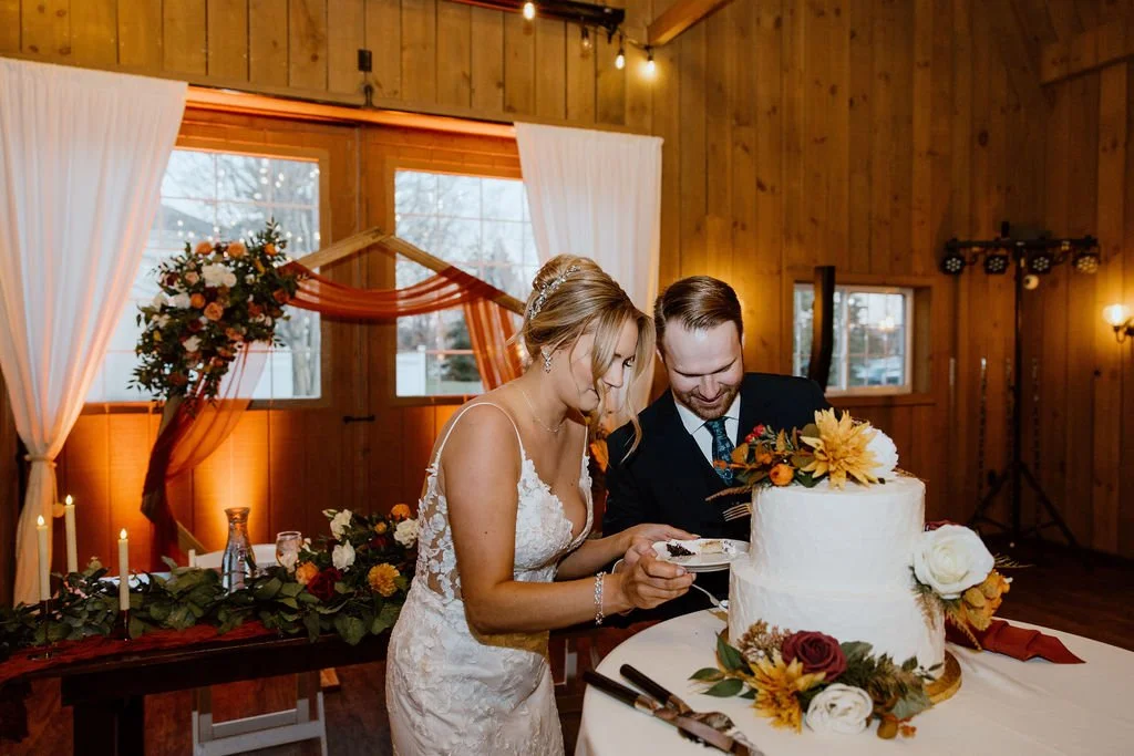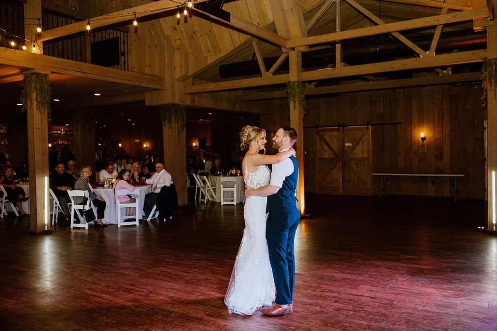 Their ceremony took place in the barn and was followed by an outdoor cocktail hour and a gorgeous reception back inside the barn. The florals featured stunning fall colors and there was lots of romantic candlelight. There were several toasts and special dances before everyone hit the dance floor to cap off an incredible day! Cheers to Claire and Maxx!