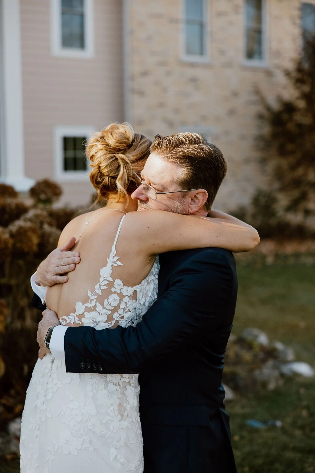 Claire and Maxx’s wedding at Rustic Manor 1848 took place on a gorgeous November day. They started the wedding day getting ready with their wedding party and then had a first look and read their vows to each other privately. Claire also had the sweetest first look with her dad - his emotional reaction was so heartwarming. Following the first looks, they had time for portraits prior to the ceremony.