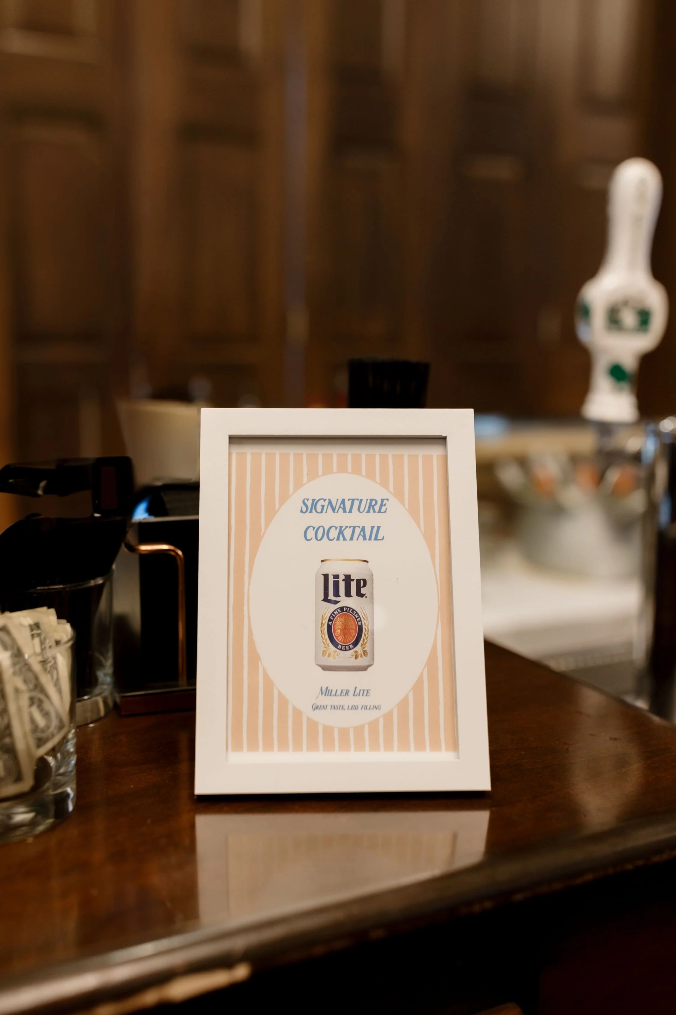 Maggie and Mike enjoyed cocktail hour with their guests. Their signature drink was Miller Lite - perfect for a Wisconsin wedding! The reception began with their first dance followed by heartfelt speeches, a delicious dinner and the most joyful and fun dance floor with great props.