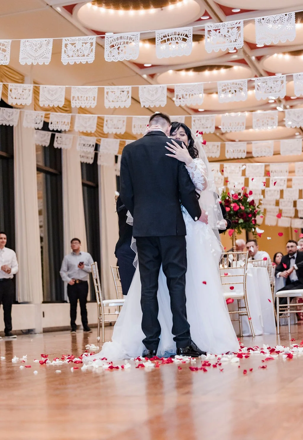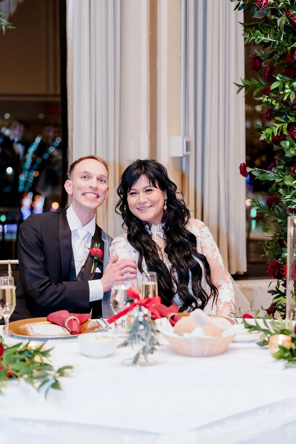 Selene and Alex’s Marcus Performing Arts Center wedding game together in just two months! Alex’s mother came to us two months before the date and said her son just got engaged and wants to get married on 12/12. She asked if it was possible to plan a wedding in two months and we were excited for the challenge of planning everything with such a quick time frame. The couple hadn't selected their reception venue yet so we set up six venue tours for them the following week. They made a decision and everything else was a whirlwind!
