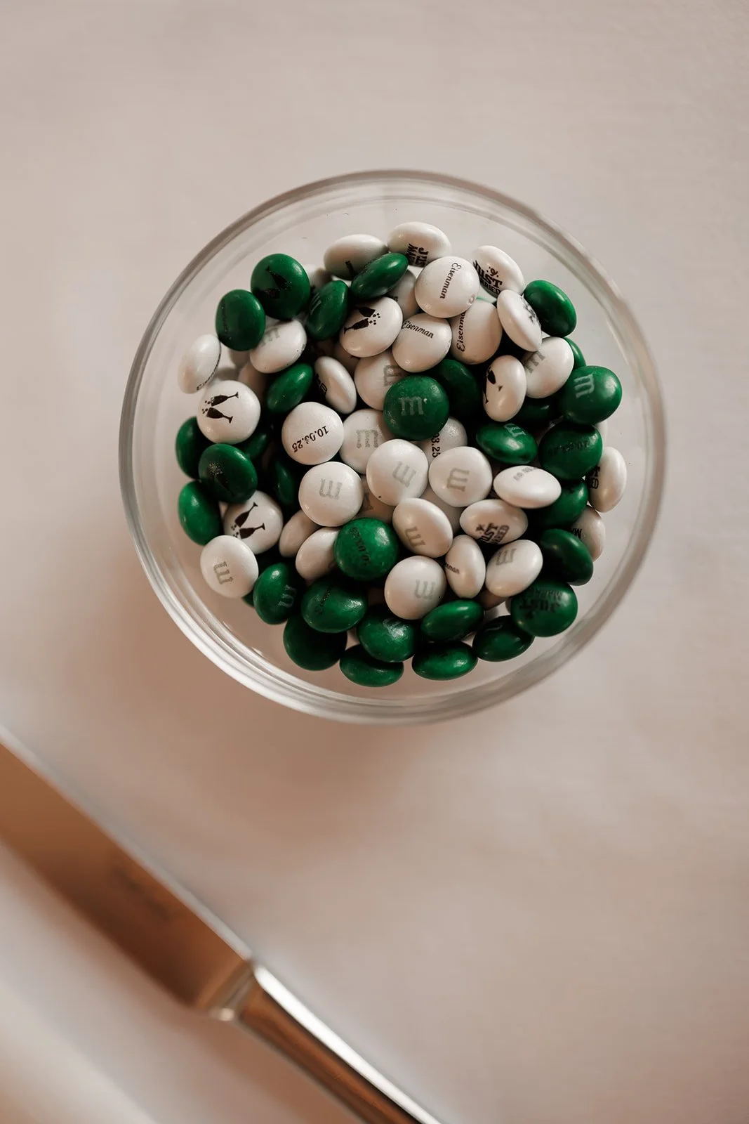 Another fun detail guests loved were the custom M&Ms placed on the guest tables featuring the couple’s initials which was a sweet (and very on-theme) surprise.