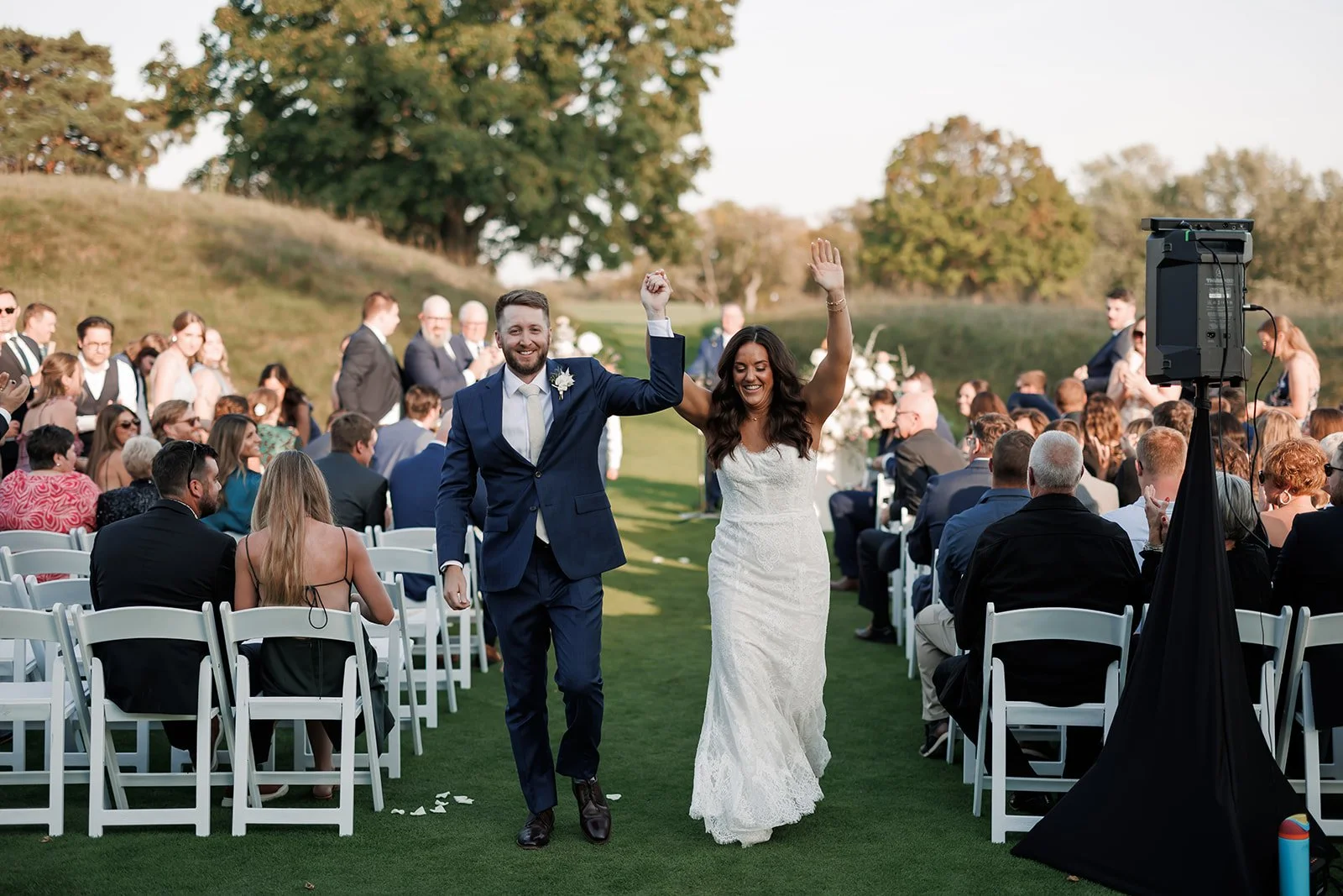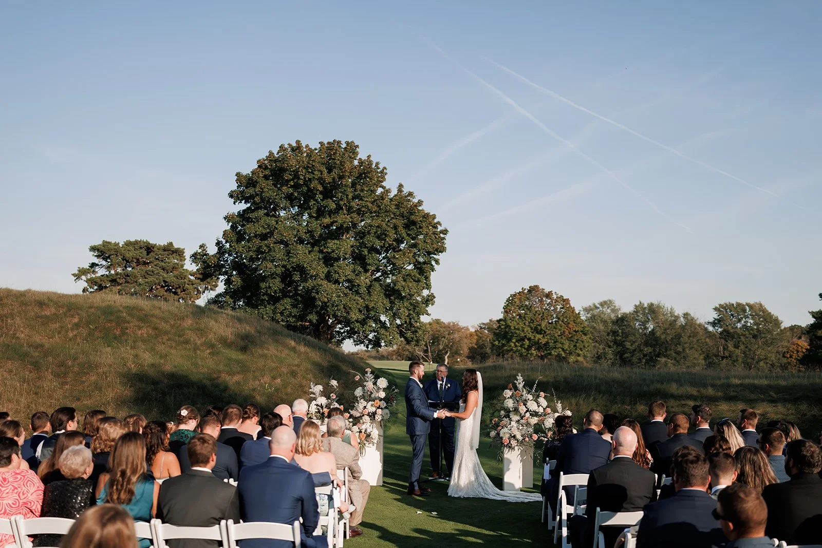 One of the most special parts of the ceremony was that Mitch’s father served as the officiant. Having a family member lead the ceremony always adds such a personal element and makes the moment even more meaningful for everyone involved. The ceremony also included a unique layout: the couple stood on opposite sides so their families could see their faces throughout the ceremony. It’s a simple change that made a big impact for guests.