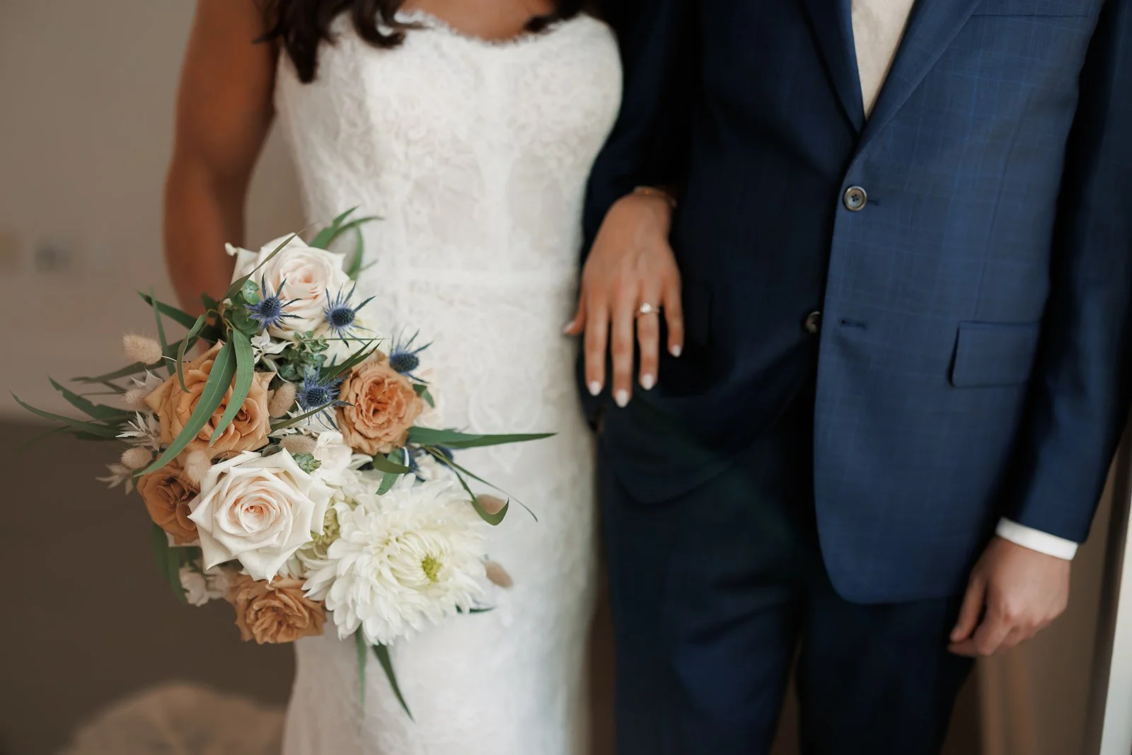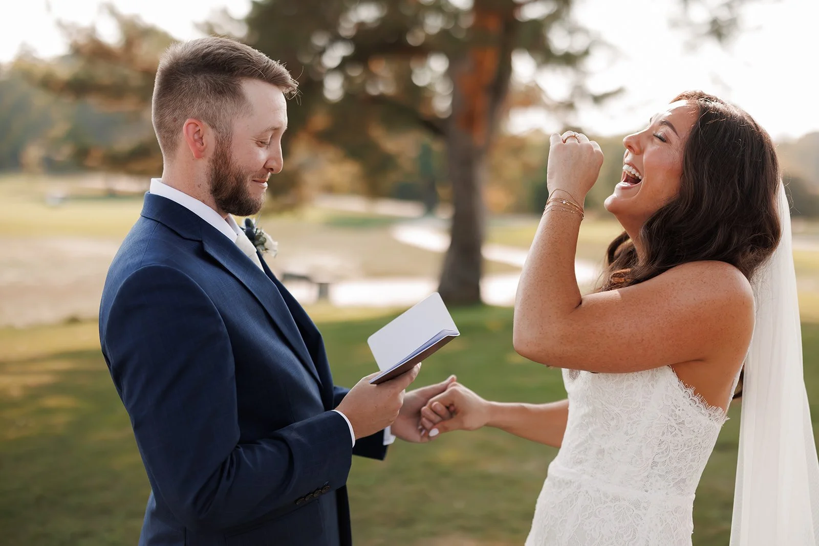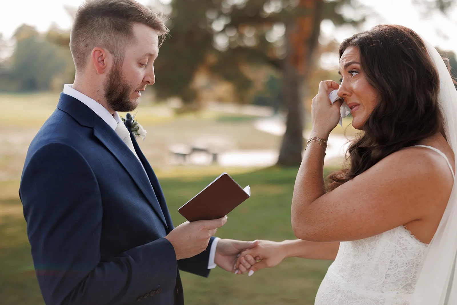 The couple chose to start their day with a first look and private vows. Taking a few minutes together before the ceremony allowed them to slow down and enjoy a quiet moment before the festivities began. These private exchanges are always one of our favorite parts of a wedding day. They allow couples to focus on each other without the pressure of an audience.