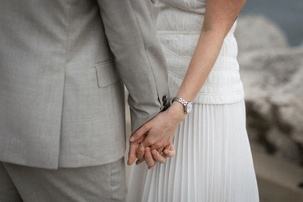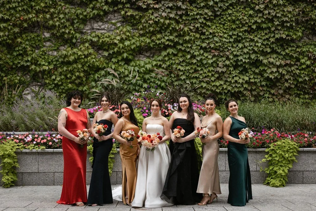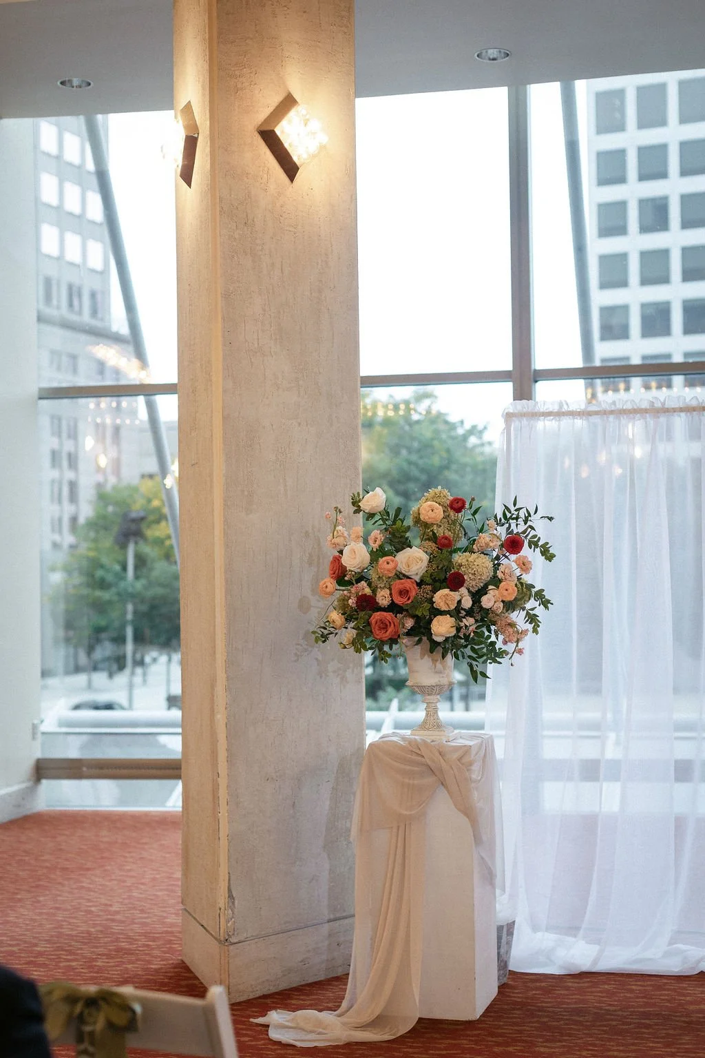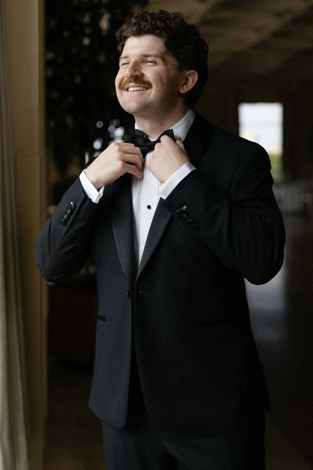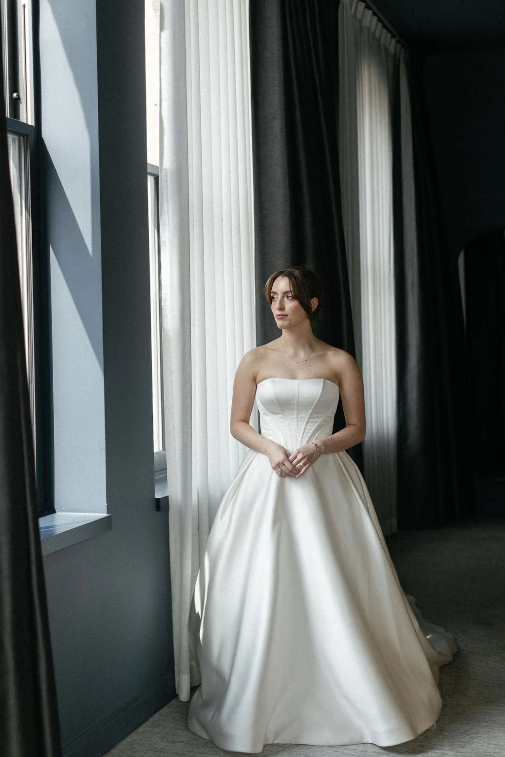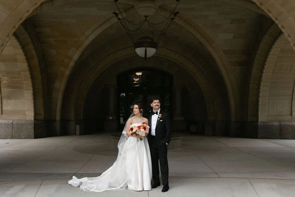 On the wedding day, everything moved with intention from the very beginning. The morning was spent getting ready, followed by a first look that allowed them to step away together before the day fully began. From there, they explored the city for portraits, taking advantage of Milwaukee’s architecture and lakefront for a series of photographs that felt both modern and distinctly personal.