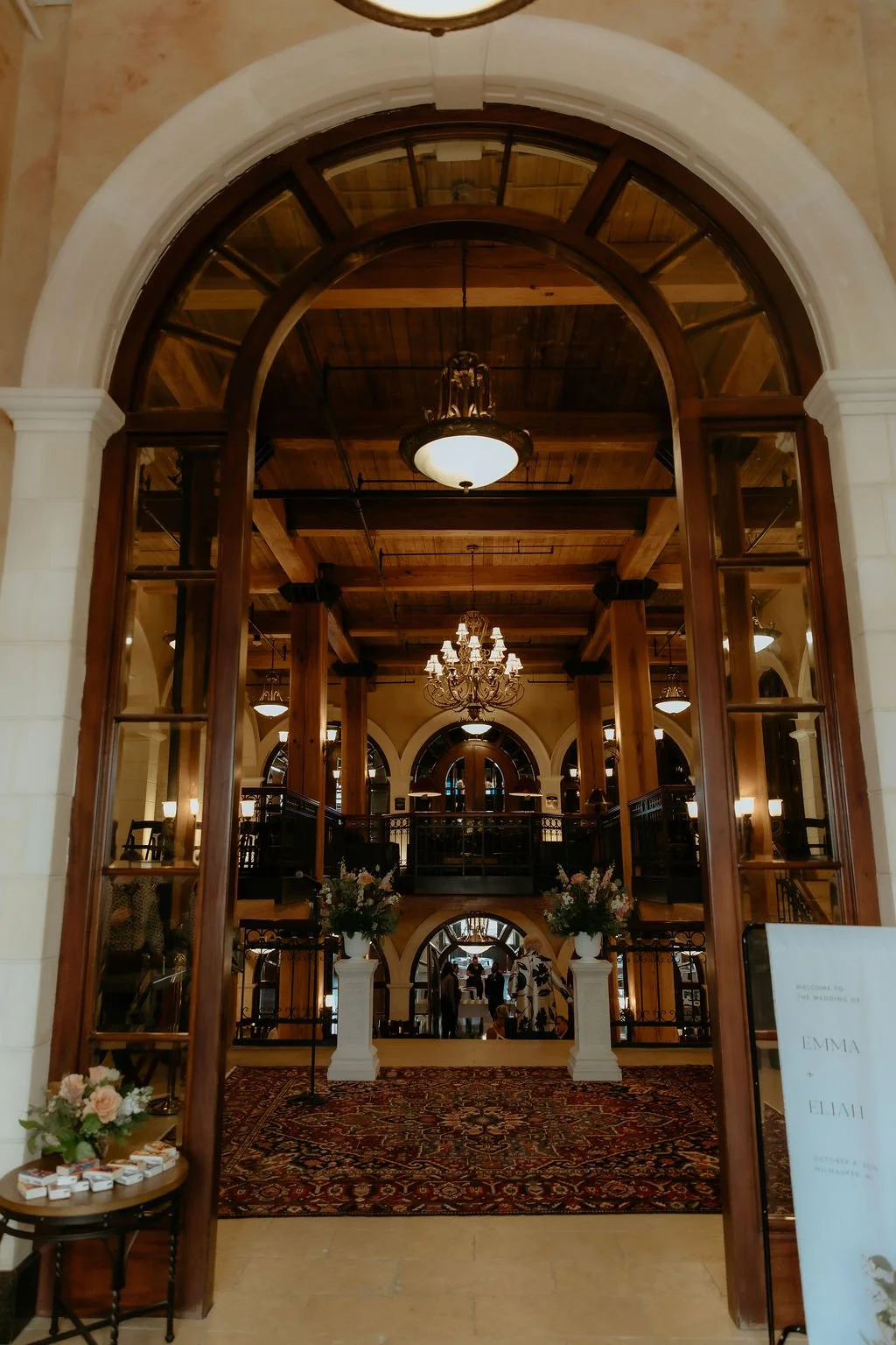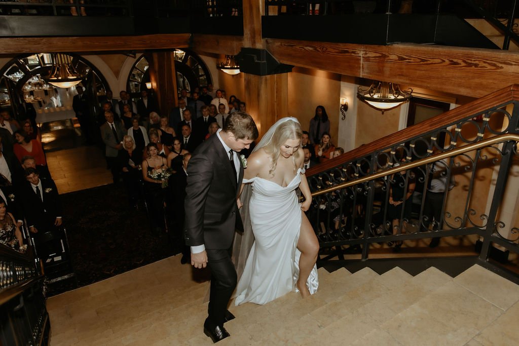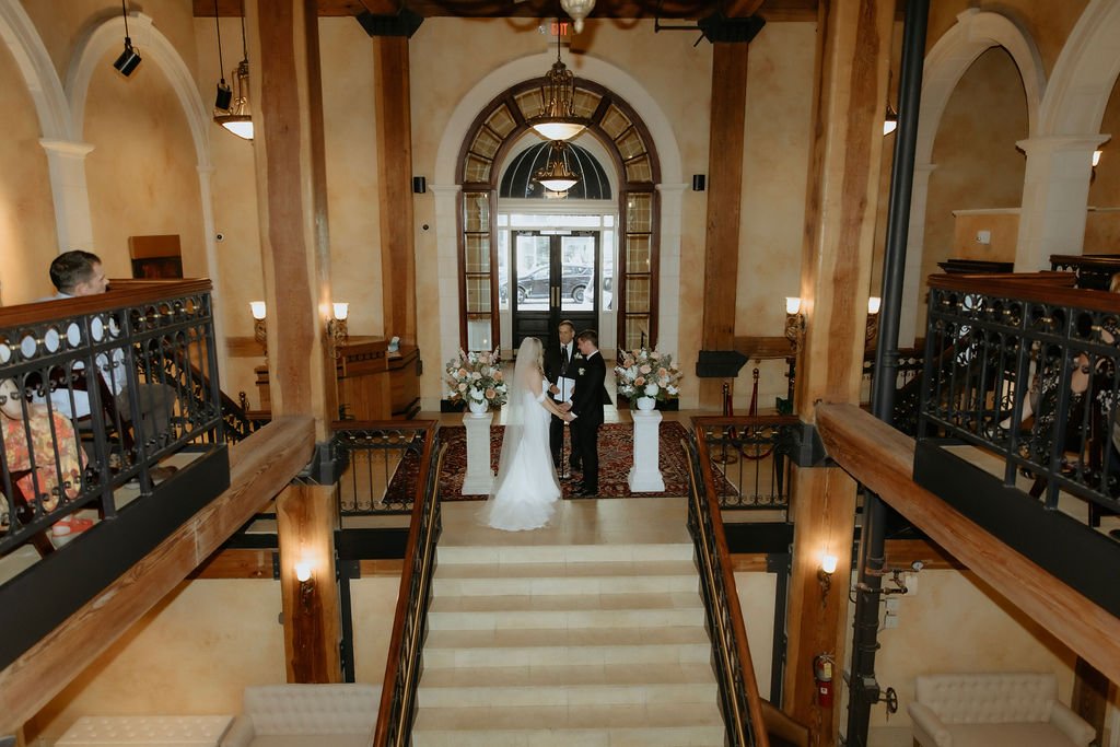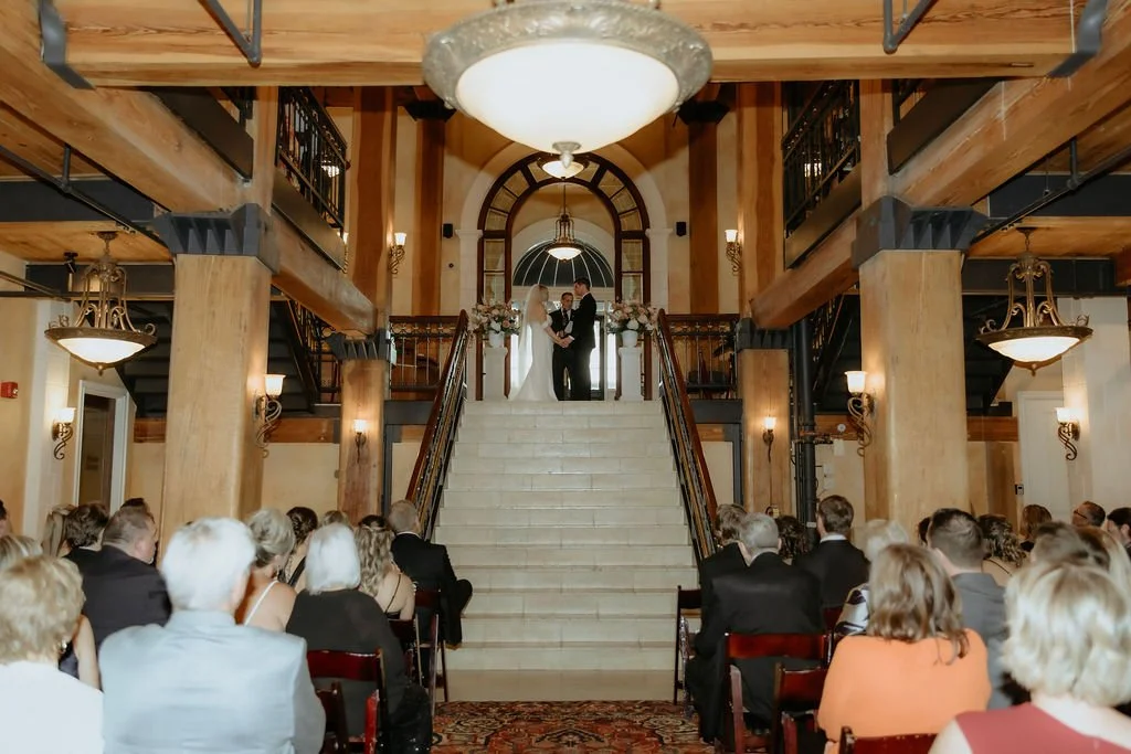 The ceremony held one of the most memorable moments. Emma was escorted by her dad to start and then the couple walked up the staircase together to the ceremony space, side by side. It was simple and meaningful. At the top, the groom’s uncle officiated, adding a sense of familiarity to the moment.