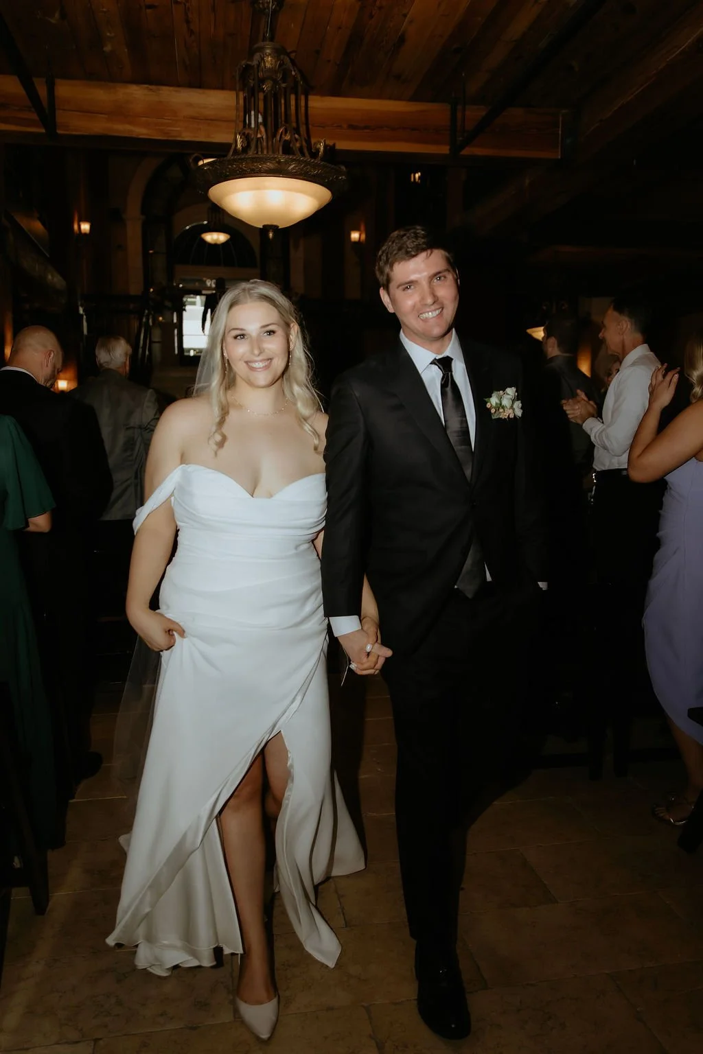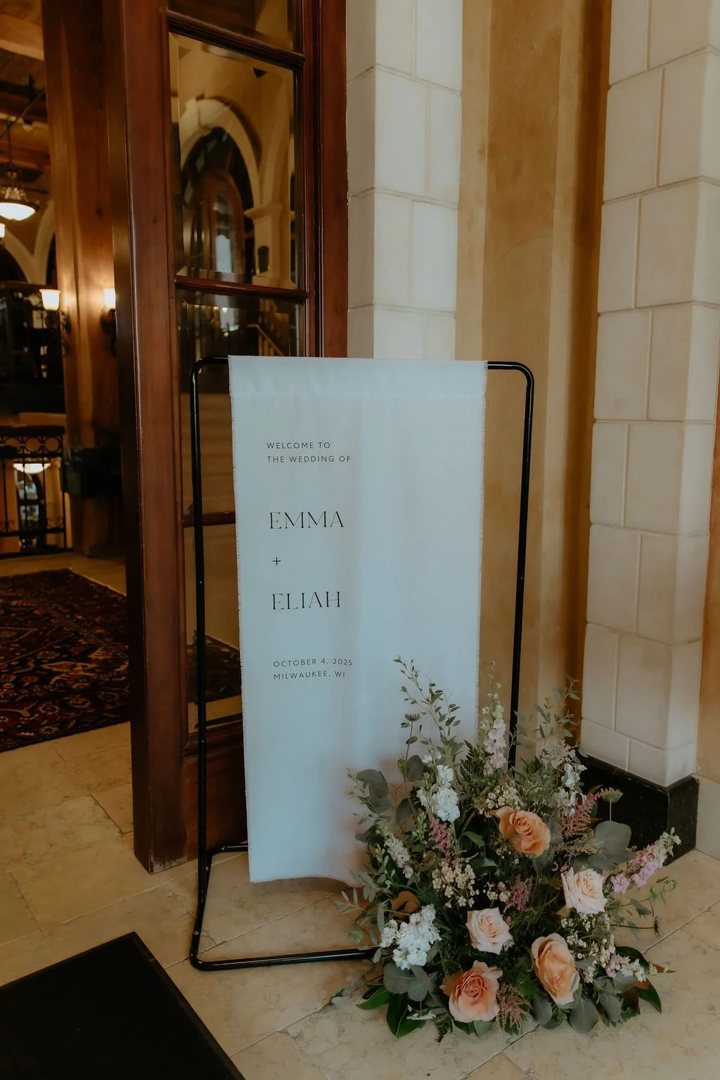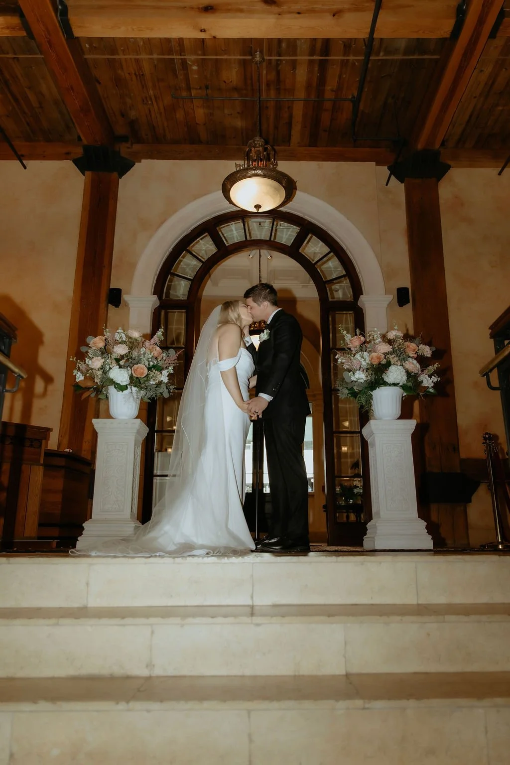 The ceremony held one of the most memorable moments. Emma was escorted by her dad to start and then the couple walked up the staircase together to the ceremony space, side by side. It was simple and meaningful. At the top, the groom’s uncle officiated, adding a sense of familiarity to the moment.